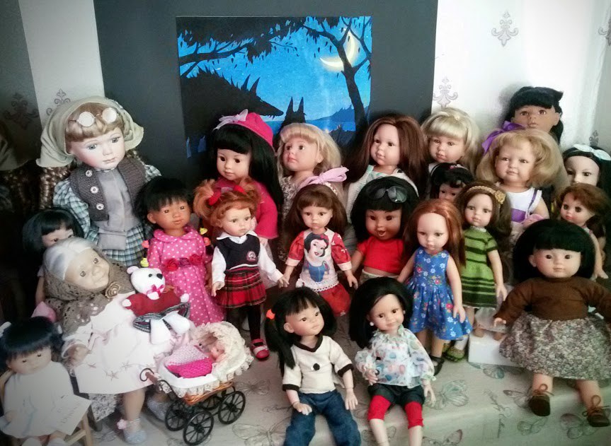 У меня лидируют игровые куклы от Паолы Рейны, уже 27 кукол от 20см до 58см, люблю кукол Кармен Гонсалез (их 6 уже), подбираюсь к Готц, и просто любимые игровые куклы разных фирм. И люблю азиатов, выделяю их в подколлекцию :))Фото уже старое, азиатов прибавилось. :))