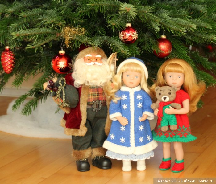 Какая праздничная компания в гости заглянула, наряды у девочек прелесть! Даже не могу сказать чей образ понравился больше. Снегурочка будто всегда и была Снегурочкой. И рыженькая красавица нравится не меньше, а как трогательно мишку держит!