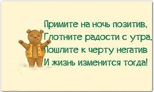 От того как мы смотрим на мир и его воспринимаем, зависит наш образ жизни и настроение, желаю вам ни когда не унывать и настраиваться на ПОЗИТИВ! И тогда можно победить все сомнения и трудности, если они есть!