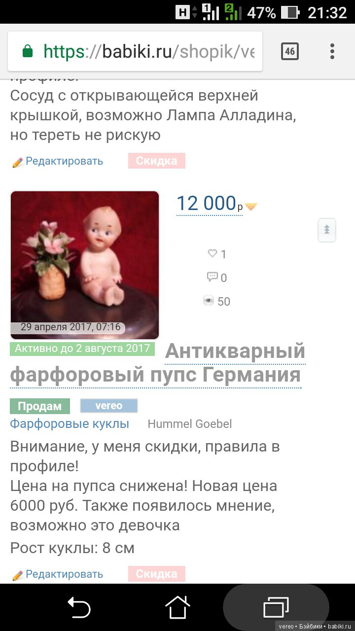 На объявлении появляется плашка «Скидка» и покупатель сразу знает, что именно этот продавец готов немножко поторговаться.