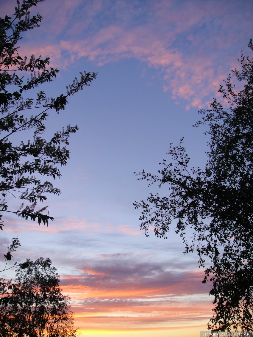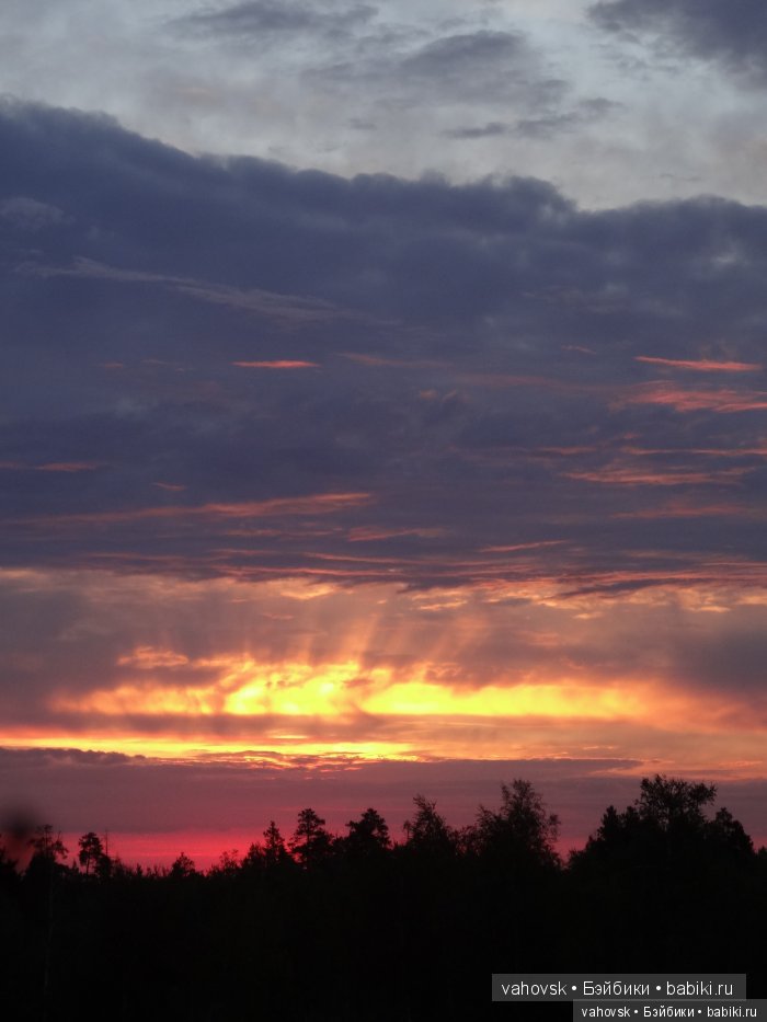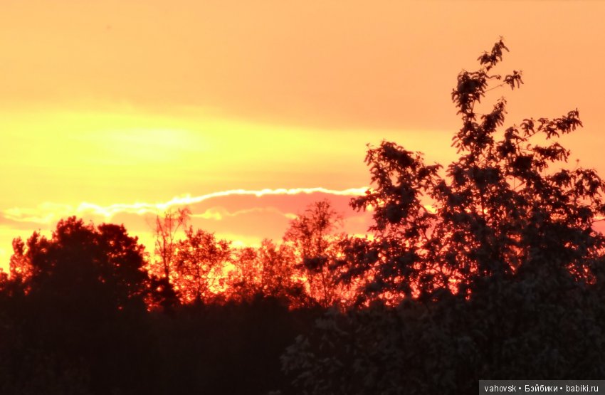 Всё лето рассвет прямо у меня перед глазами, в нескольких метрах над лесом за протокой))…