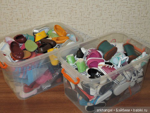 А под обувь у меня два ящика у комода у Готц и прозрачные пластиковые плоские коробки у Американ Герл)