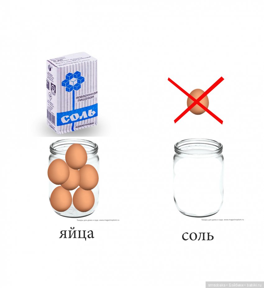 А, во вторую банку (где уже находится соль)- предложите ребёнку засунуть яйца. Яйца в эту банку всунуть не возможно.