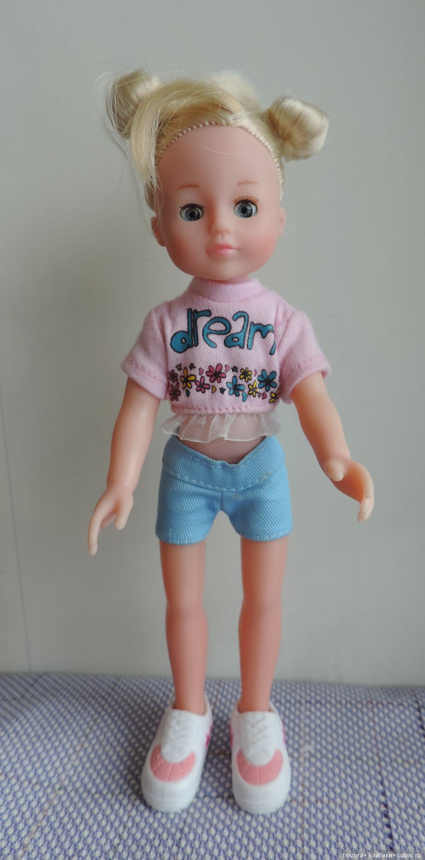 Она тут в родном наряде (только адский люрексный пояс я от шортиков отчекрыжила с мясом) и с родной причёской. И да, она у меня тоже из странных. Купила её сама, в здравом уме и твёрдой памяти, покорила она меня своими спящими глазками у такой малютки!