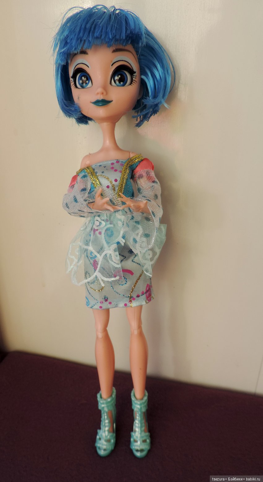 Монстр Хай, для всех уже совсем обычная кукла, в моих глазах до сих пор остается странной. Довольно у них необычное тело и конечности, да простят меня любители этих кукол, когда я держу их в руке, мне кажется, что я держу насекомое. Попали они ко мне можно сказать нечайно – увидела их за копеечку и безумный хомяк смутил))) Но заставить себя их одеть до сих не могу. Стоят среди «странных».