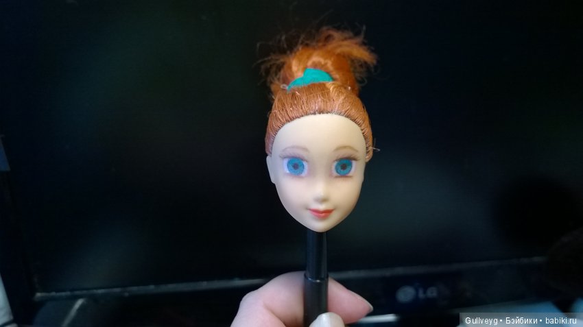 Ну и волосы мочалка. Тело вчера за день при помощи донора, наждачки, ножика и зажигалки привела в порядок. Сегодня хочу головушкой позаниматься, волосики для нее уже решено какие, они у меня в наличии))) Ее перерисовывать не буду, у нее своё личико очень милое))