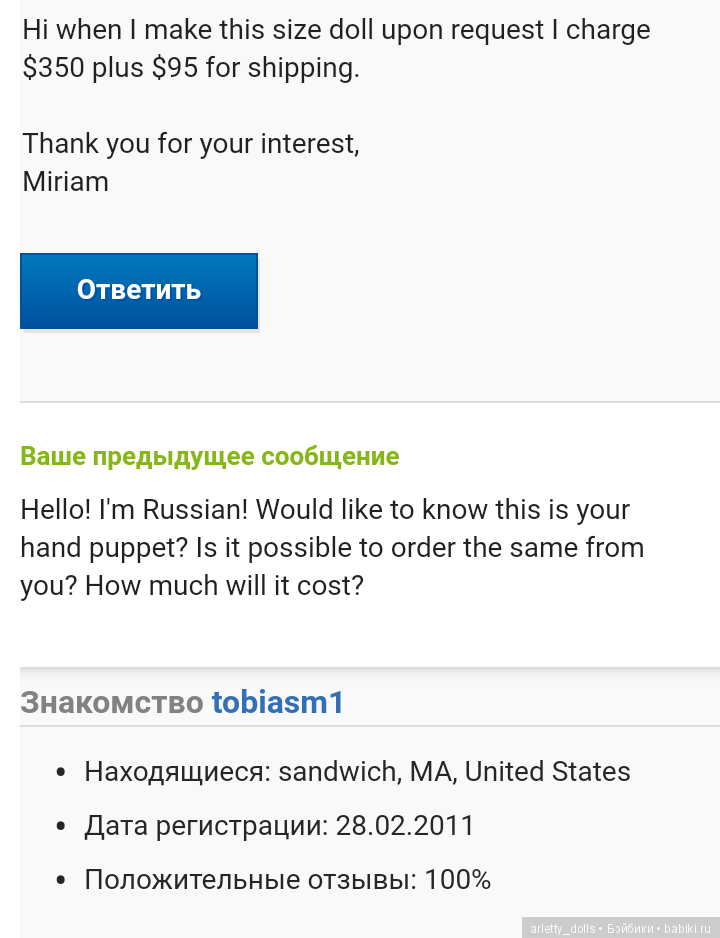 Это именно та кукла, которую Вы показываете. Ее, действительно, сделала мастер Мими из Америки. Антонина, более того, объявление разместила сама мастер, так что у Вас огромные шансы купить такую!
