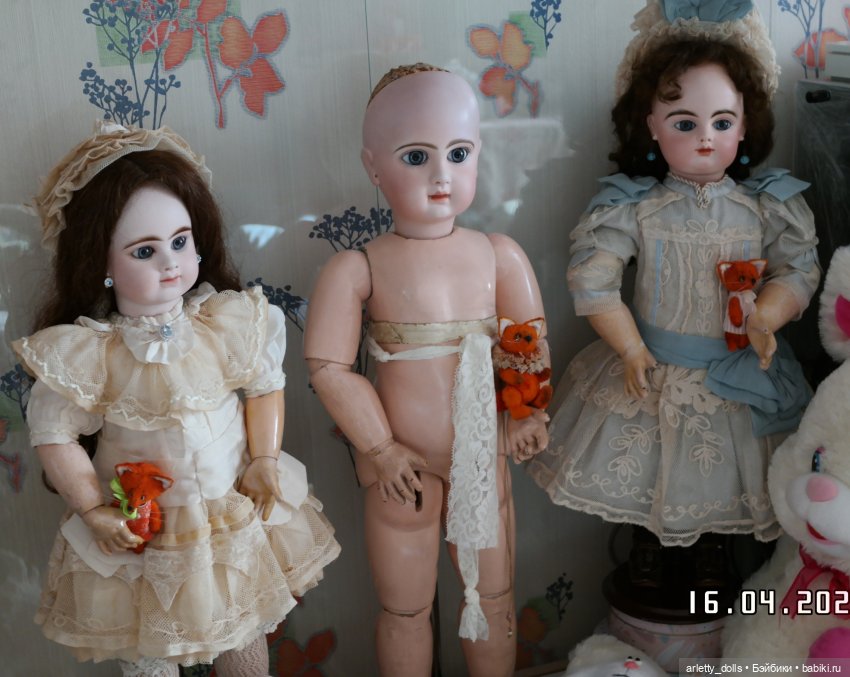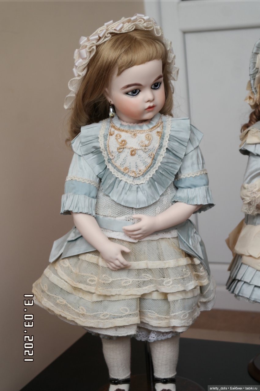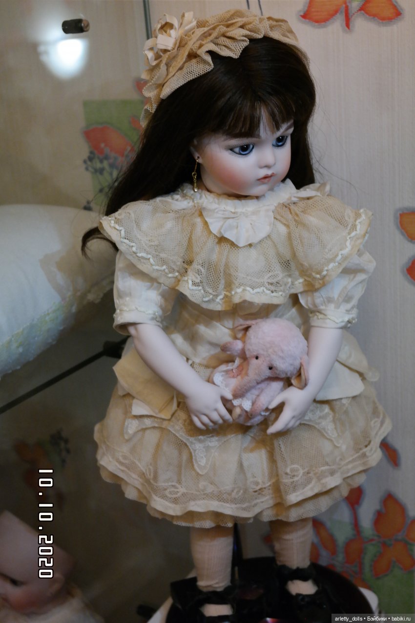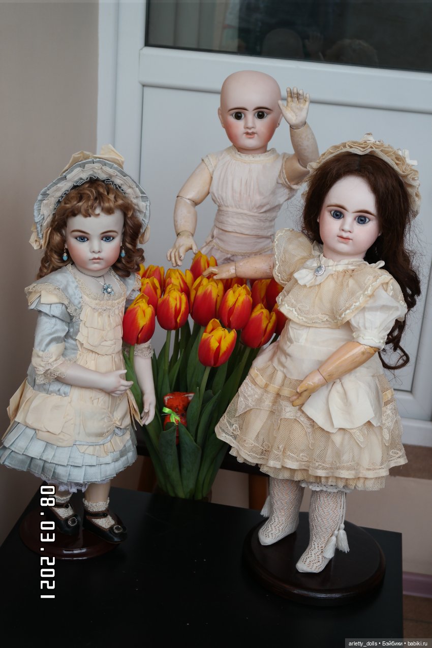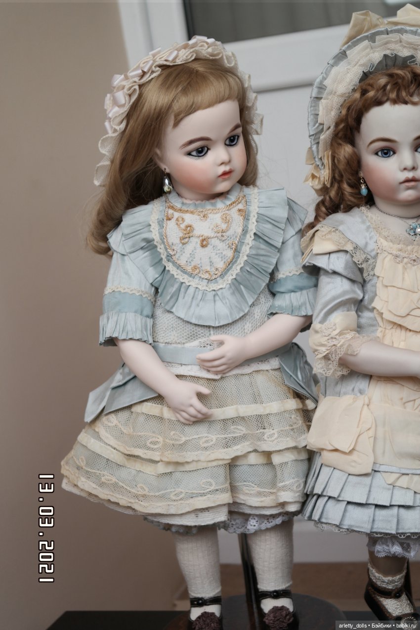 Дома у меня есть ранние белолицие закрыторотые Gaultier, Jumeau, Denamur, у меня есть с чем сравнить фарфор. Мои реплики рядом с ними не имеют особых отличий, не выделяются, скорее дополняют компанию ранних антикварных французских кукол.