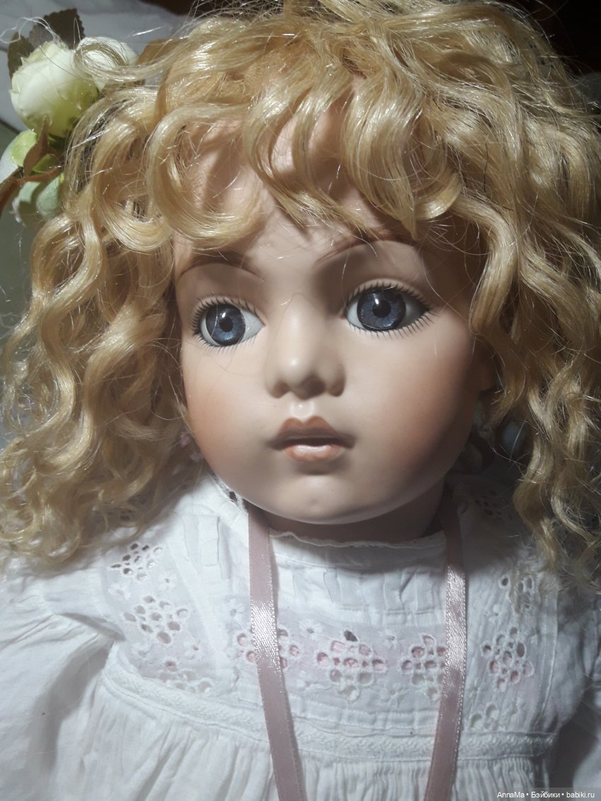 Жила была девочка Наташа.Наташа с детства любила кукол.И была у Наташи, уже ставшей бабушкой, большая мечта-обладать антикварной куколкой Брю. Но так как куклы эти стоят как крыло самолета, Наташа задвигала свою мечту в долгий ящик.Иногда Наташа посматривала на обьявления о репликах Брю, так как эта цена была доступной.Реплики были обычно… не очень.И лица не те, и костюмы не те.В общем все не то… Но когда люди мечтают, бог посылает им шанс.Однажды Наташа увидела аукцион на обнаженную реплику Брю, которая очень понравилась.Это был обнаженный голубоглазый ребенок 26" ростом.Наташа стала следить за аукционом.Странно… никто не делал ставок… цена была очень привлекательной.Было непонятно-почему нет ставок? Потребовалась помощь знатоков.Знатоки уверили что это хорошая реплика, от американского мастера по имени Мими, и что на ее кукол обычно никто и не делает ставок до самого конца аукциона, чтобы цена не взлетела до небес.Но все эти люди следят за листингом. Наташа посмотрела-и правда,24 человека следят. И Наташа подумала-я выиграю ее! Аукцион приближался к концу… и дальше случилось невероятное! В последние секунды цена начала расти на глазах как секундомер, но Наташа выиграла!!! Это была ее реплика Брю-Репка:)))Маленькая обнаженная прекрасная Репка приехала домой через 4 дня и руки зачесались одеть малышку.Эх милота!!! Туфельки нам подошли из сундука от Леночки Поляковой. В секонд хэнде нашлись винтажные шторы и одежда, безжалостно порезанная на детали наряда.И вот, наряд для нашей Репки готов! Она такая милая, с глазами-звездами, полюбуйтесь! Пусть эта малышка подарит и вам хорошее настроение!