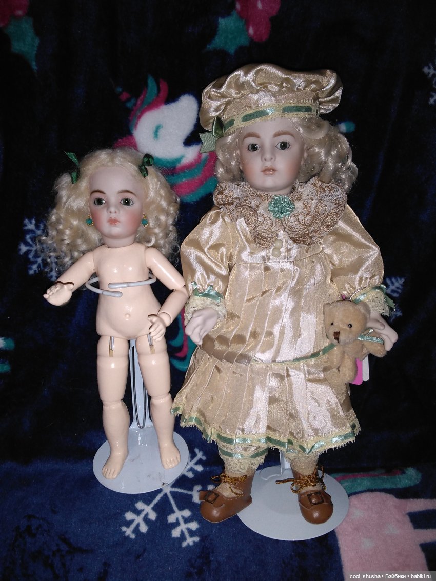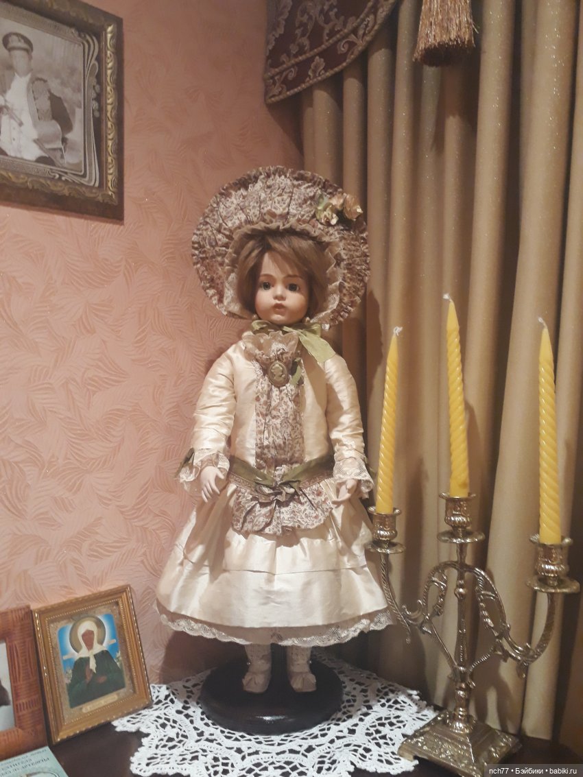 Моя реплика выполнена Бранкой Шарли. Историю чудесного повторного приобретения этой куклы я написала в предыдущем своем топике. В куколке мне нравилось все, кроме рук. Само тело (не знаю, дерево это или композит?) меня устраивает полностью, но вот руки выглядели грубовато. Здесь мне очень помогла Елена Писарева elena-fp , которая отлила для моей куклы великолепные фарфоровые руки. Платье и боннет сшиты чудесным мастером Marina65 . Удивительно, что Марина шила на заказ без примерок, но одежда сидит идеально. Парик временный, но в целом он вполне подходит. В общем, я довольна ) Одна мысль меня вдруг озадачила. Я — ярый противник нарушения авторских прав и подделок. Можно ли считать подделкой реплику антикварной куклы в юридическом понимании? Надеюсь, что у известных мастеров, которые делают реплики, этот вопрос как-то решен, они ведь продают свои работы открыто. Вроде нашла, что авторское право действует 70 лет после смерти автора… Тогда вроде норм ) Буду рада, если вы покажете свои реплики антикварных кукол.