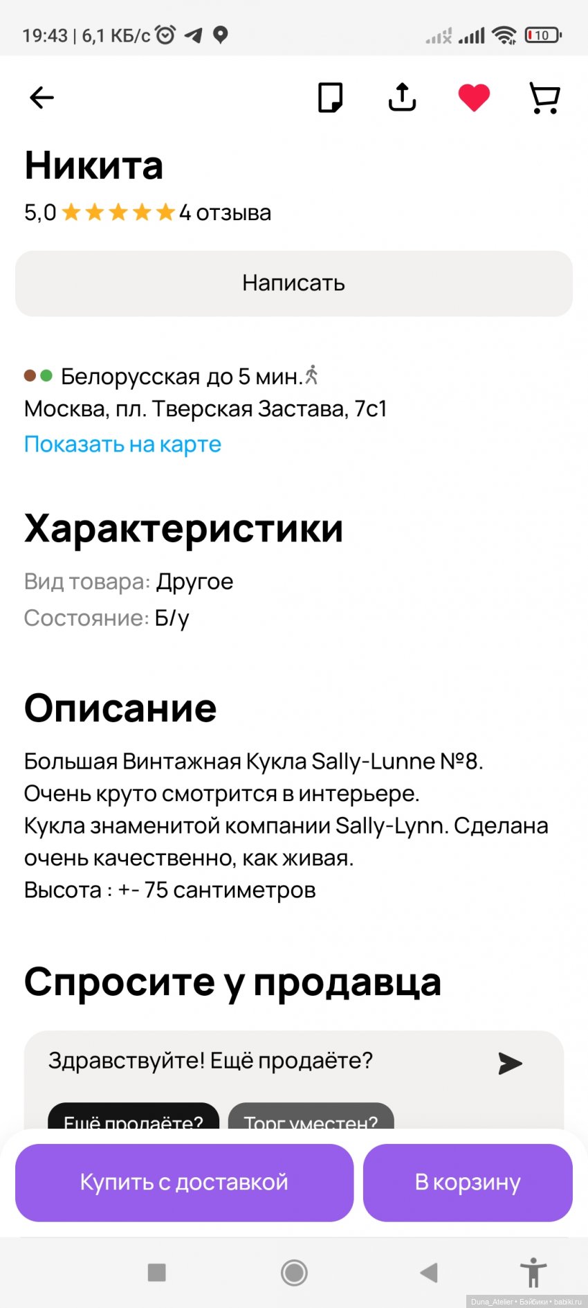 Продавец написала, что больше не будет делать кукол, все остатки продаёт.