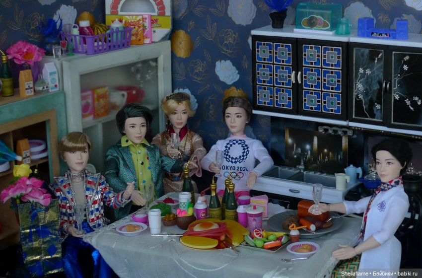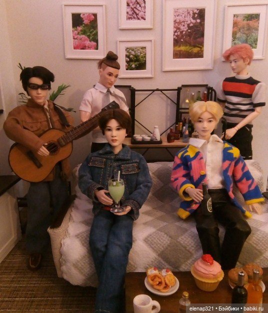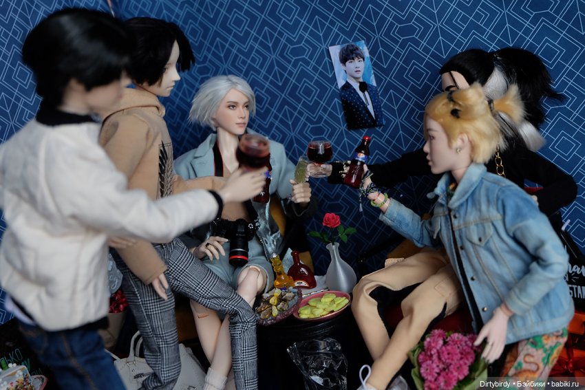 Дорогая Олечка, в первую очередь хочу поздравить тебя с двухлетием на сайте и поблагодарить за всю ту радость, которую ты с придурками даришь благодарным зрителям и читателям!!! Так случилось, что мы пересеклись буквально с самого начала моей регистрации здесь, и ты чуть ли не первый человек, с кем началось активное общение, причём тоже благодаря любимым придурочкам! Ведь именно благодаря тебе я впервые открыла для себя кукол BTS, и не только открыла, но случилось настоящее чудо, когда обнаружила их в одном из наших магазинов по невероятным скидкам! Поэтому примерно в то же время, но год назад, 4 мая, я нажала кнопку «КУПИТЬ» — и ко мне приехали сразу 5 жильцов будущей, тогда ещё виртуальной общаги, план которой едва-едва рождался в голове)). Хотя примерно за месяц до этих радостных событий у меня поселился Чимин, но в единственном числе.