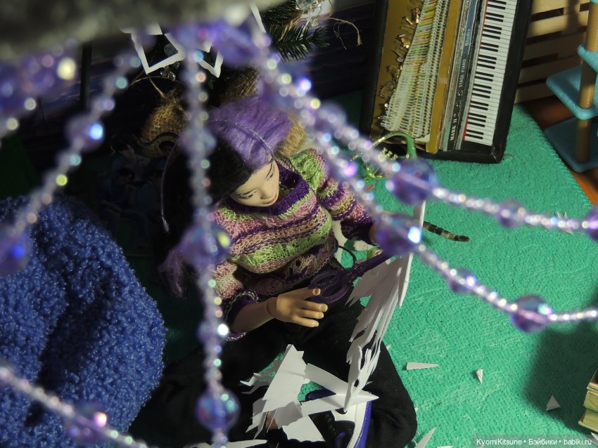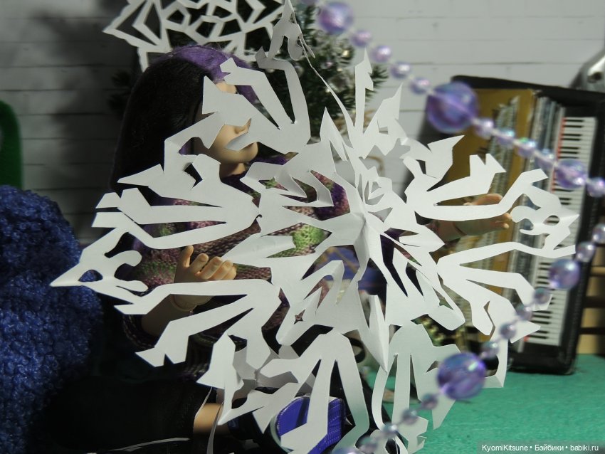 – Ладно, на моем свитере снежинки тоже не идеальны. Да, это снежинки, и та, что с права тоже… Давайте попробуем еще одну вырезать…, кстати, у вас бумага еще не закончилась?