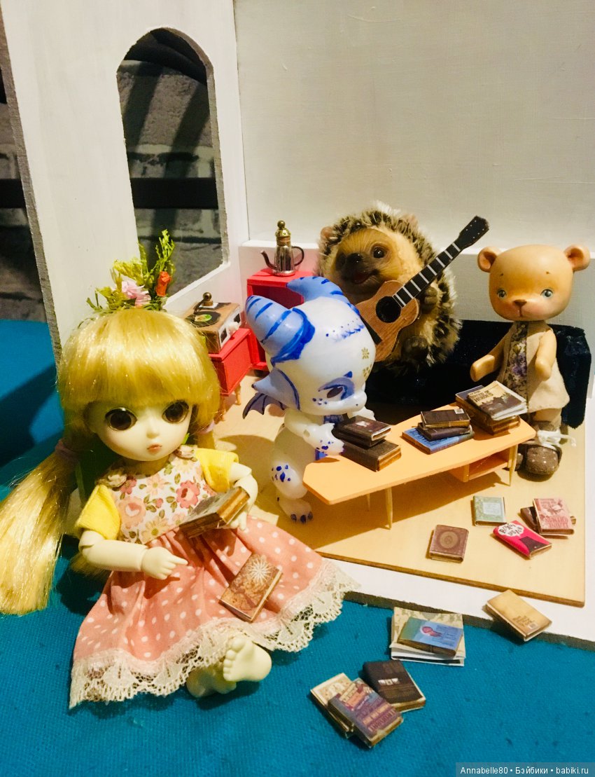 Ваша доченька умница! И шьёт и миниатюрой увлекается! Румбокс отличный! А какая компания то подобралась! Читают, музыку любят! Пусть доченька продолжает творить. Отлично у ней получается!