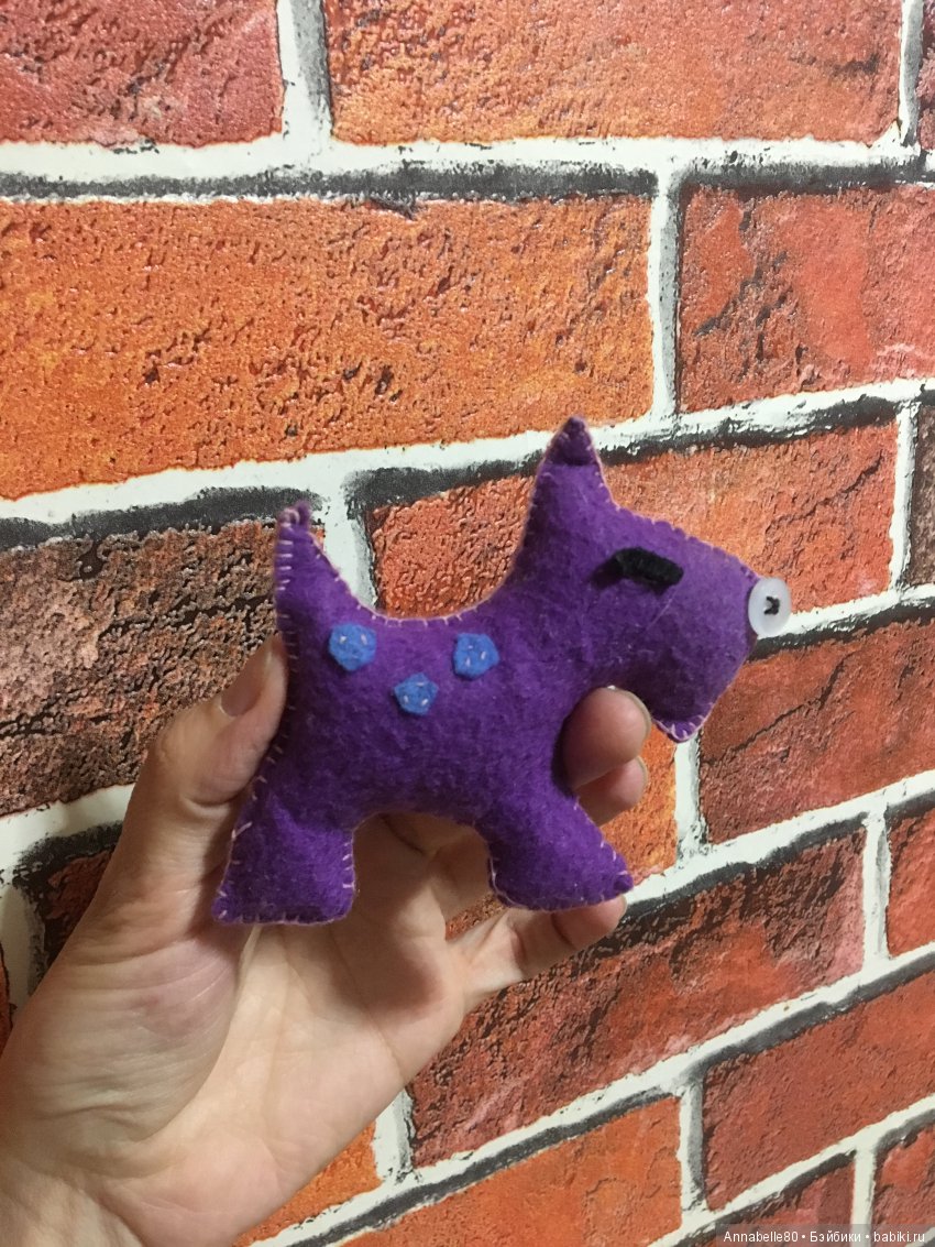 Моя дочка шьёт игрушки из фетра. Вот такого пёсика сшила мне в подарок. Выкройку рисовала сама) Она постарше Агаши, ей 12.