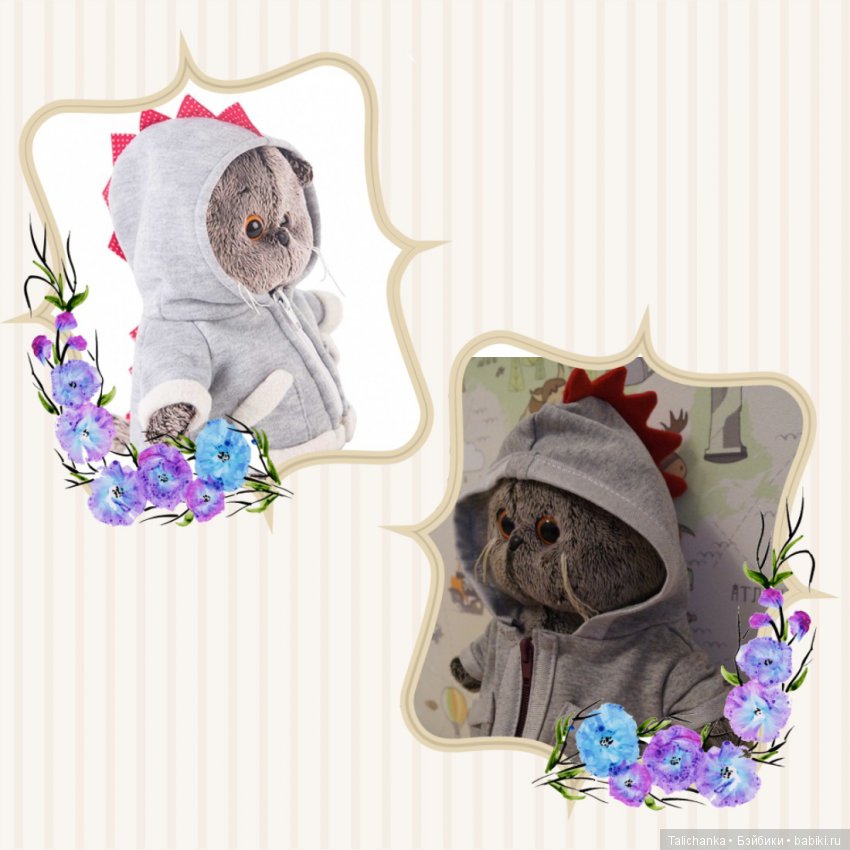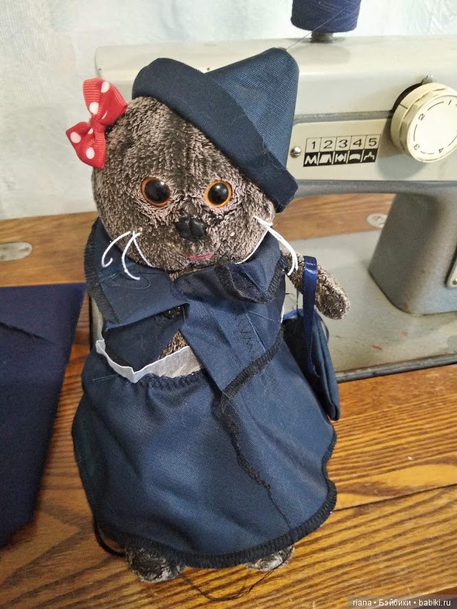 У моей внучки тоже есть любимый Басик, правда девочка и зовут её Басяня, она с ней с года не расстается, на другую менять не хочет, хотя Басяня от стирок уже «подуставшей» выглядит. В этом году уговорила чуть надпороть и поменять набику. Дочка с зятем смеются, котик от бабушки потолстевший приехал. И вот моя модельер тоже сшила новую одежду. Сама, я не помогала. Строго не судите портнихе 6 лет.