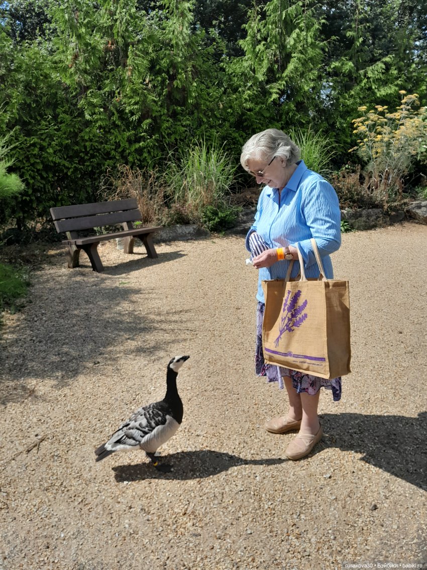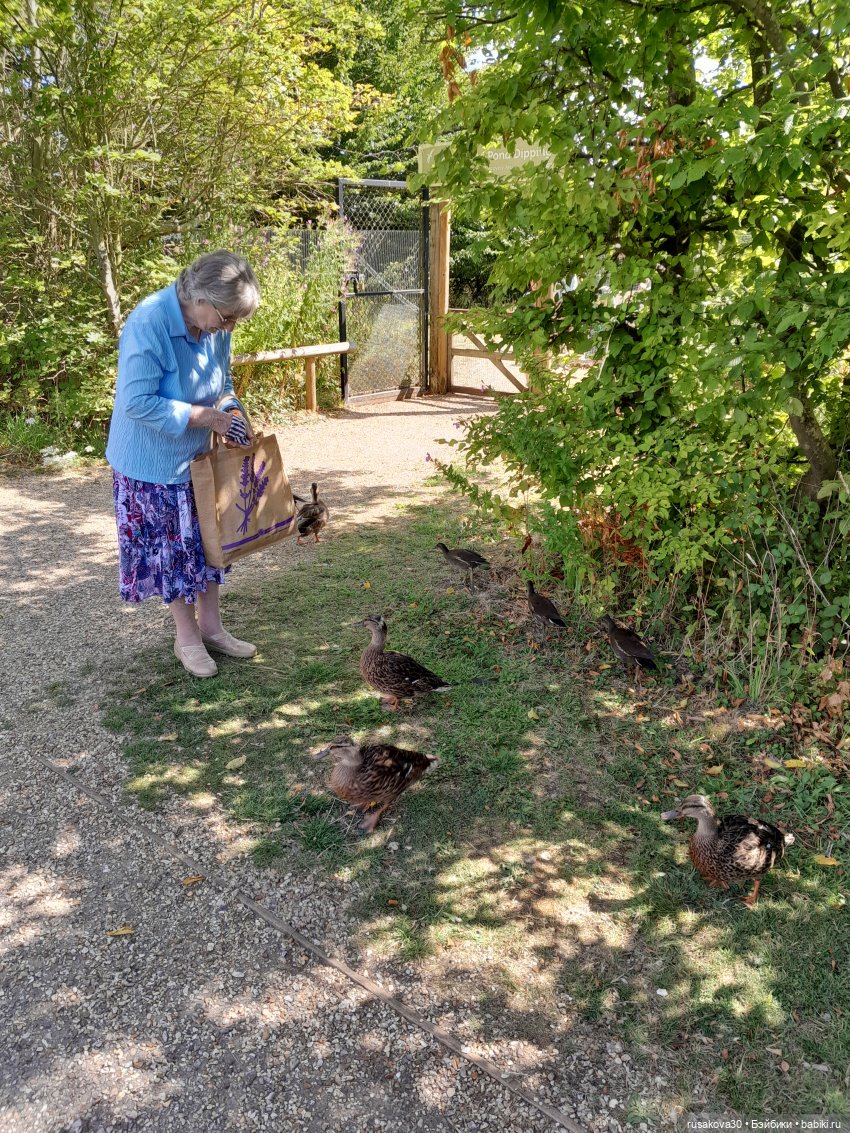 Очень много птиц, которые совсем не боятся людей. Это моя свекровь и муж,