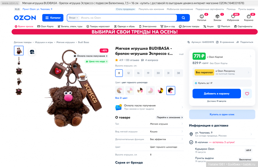 Кстати, в озоне — самый хороший выбор малышатиков, есть все. У меня еще котики в корзине там, жду, может будут скидки. КофИ не помешал бы друг.