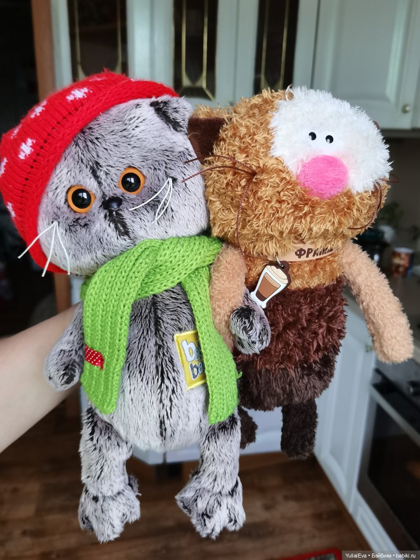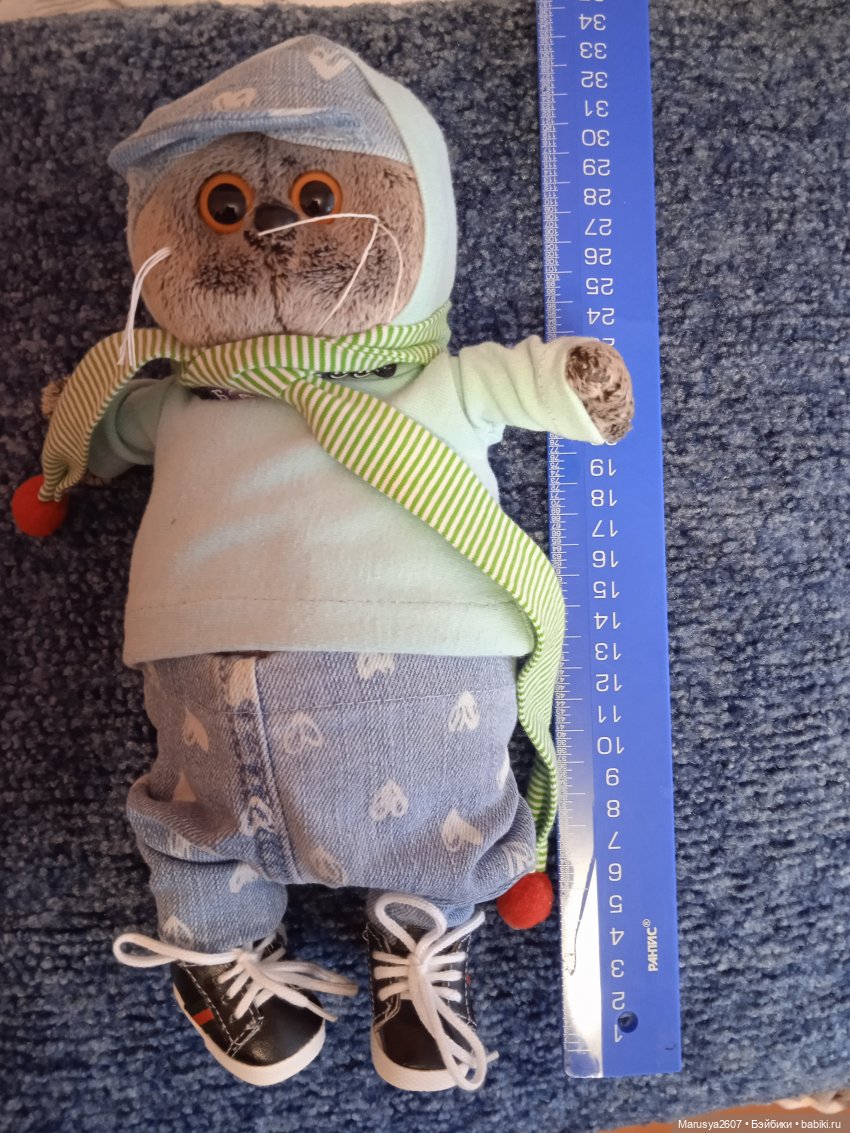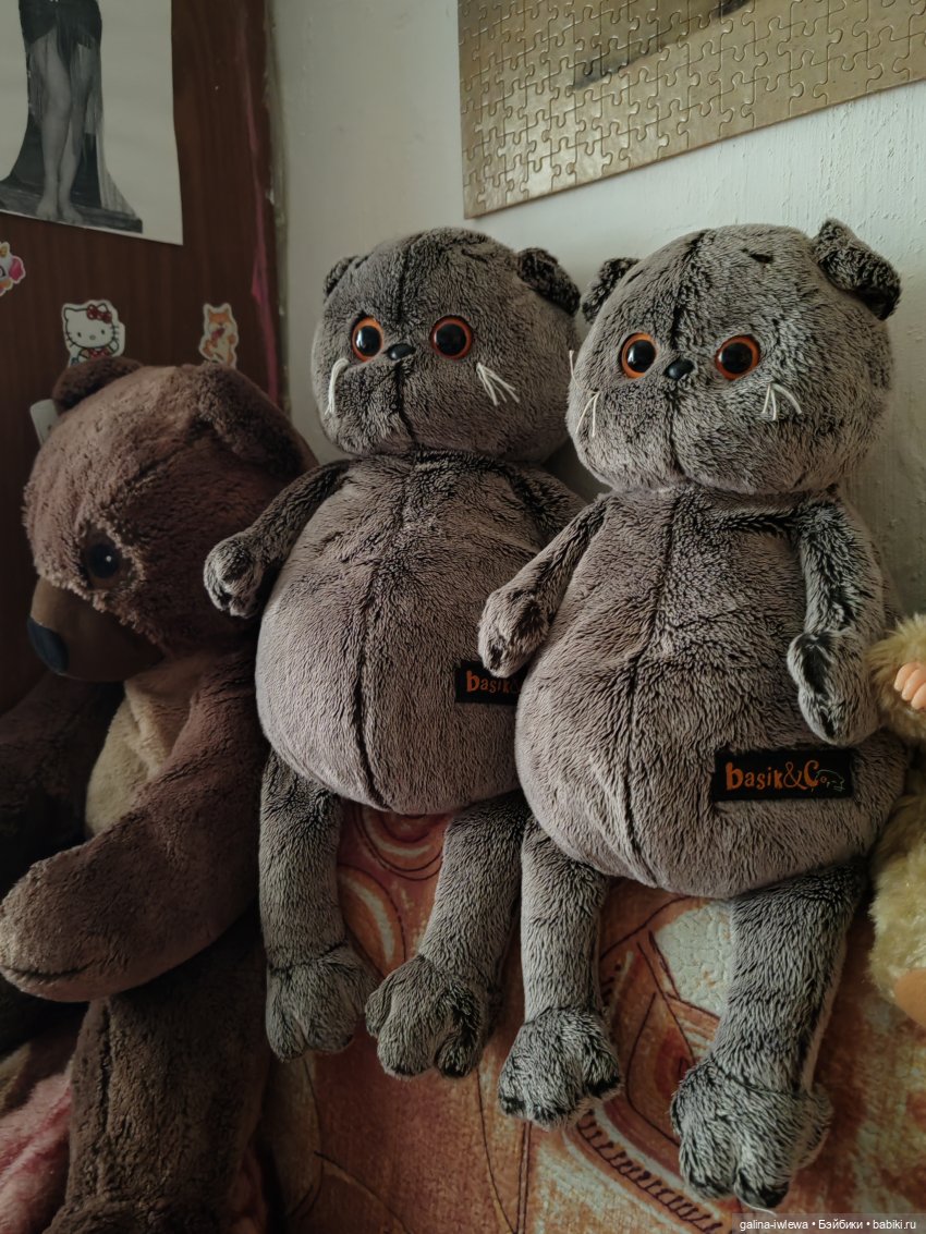 Маленький Басик у меня живет уже некоторое время, но хотелось большого. Рост купленного Басика 25 см сидя. Заказывала в Интернете, т.к. в местном игрушечном магазине продавец сказала, что не заказывают размер 25. Пользуются спросом малыши или большие Басики 30 см ростом.