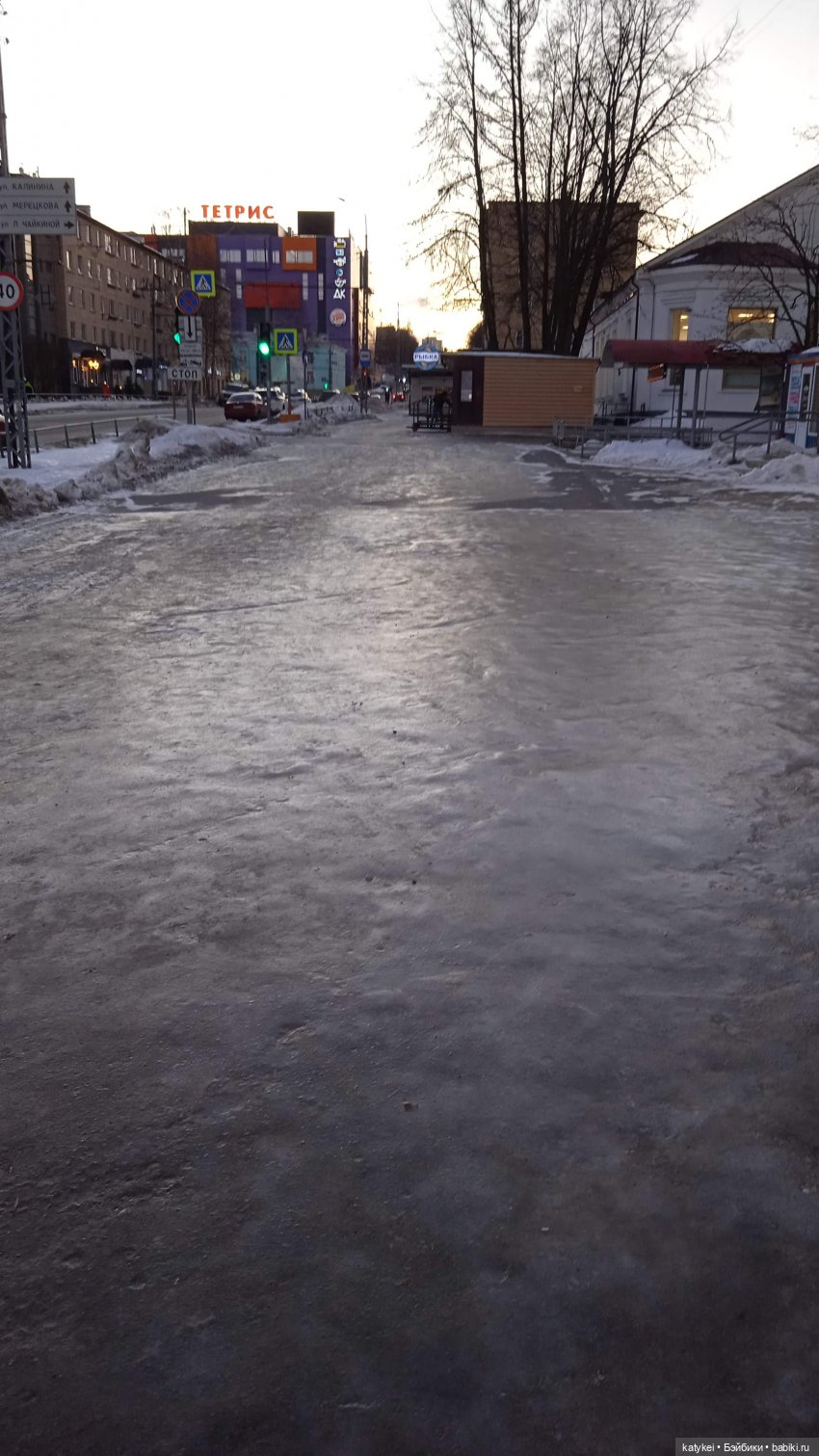 Плюсовая температура и сильный ветер. И очень скользко, каток!