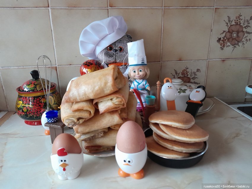 С настоящими блинами у меня нет фото, зато есть с кукольными)))