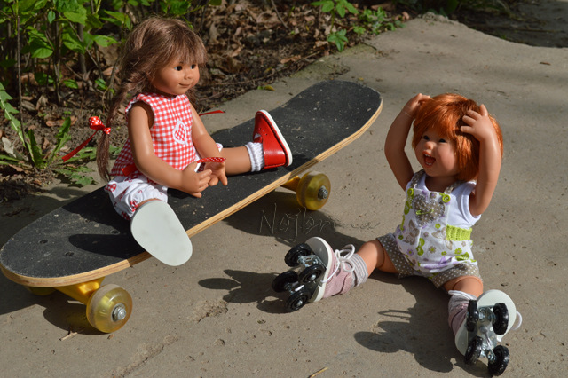 Воодушевившись видно нарядами, которые я сегодня получила для куколок, сынуля засел в комнате и вот, принёс — санки На улицу то идти