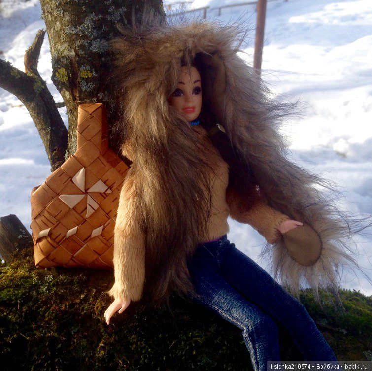 Очень похожа на корзину для пикника и отлично будет смотреться в семье Барби. Тоже выполнена Косым плетением.