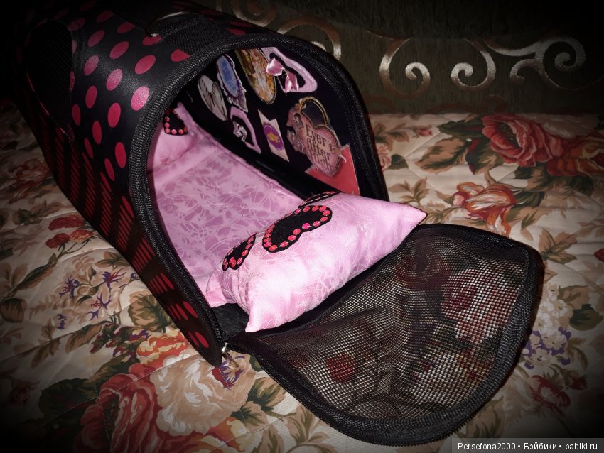 Я в шитье таких сложных вещей, как переноска не очень мастер. Вроде знаю, как надо, но получается как-то не особо хорошо… С куклами поменьше проще — можно в пенале или очешнике перевозить, а 30ти-сантиметровыми уже замучаешься подбирать нужный размер. Хорошо, китайские братья помогают!