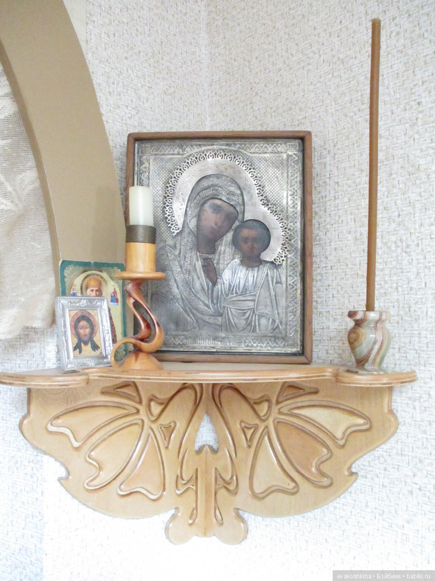 На полке — козырьке разместились две другие работы моего мужа — Хогвартс и макет Церкви Св.Архангела Михаила.Они не тяжёлые, светлые, и не создают ощущения нагромождения.Наоборот, теперь их красоту лучше видно