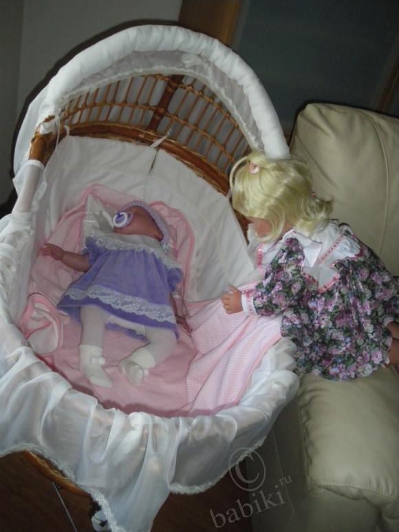 Она стоит столько же, сколько и коллекционная кукольная коляска, сделанная под старину. Коляска кукольная, достаточно большая, чтобы положить реборна, но по сравнению с колыбелью меньше раза в два.