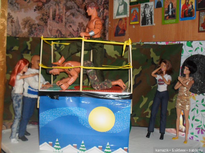 Снова здравствуйте! Это опять я. С кривыми рукоделками. Уже очень давно мечтала сделать для взрослой категории кукол спортивный зал. Хотя бы часть тренажёров. А из чего, понятия не имела. И на кукловстрече мне достался подарок от Саши Игрушечника. Это были 4 подставки для кукол. Саша, спасибо! Так вот и возникла у меня мысль, что поставить кукол будет очень банально и не интересно. А так же были у меня замученные кожаные восхитительные штаны. Из одного из кусочков была сделана боксёрская груша. Но одной груши мне мало. В ход пошла квадратная пластиковая бутылка. Опять же обклеенная кожей от штанов. И в ход пошла 2 подставка. Ещё 2 подставки ждут своего часа. А ещё я всё таки сообразила, как сделать беговую дорожку. За идею спасибо нашей Светочке smsobaka. Она мне фоточку настоящей БД прислала. Народ в качалке тоже есть. Но открытие будет только, когда появится на горизонте любовь Лизы. А пока качалку тестируют друзья Лизы.