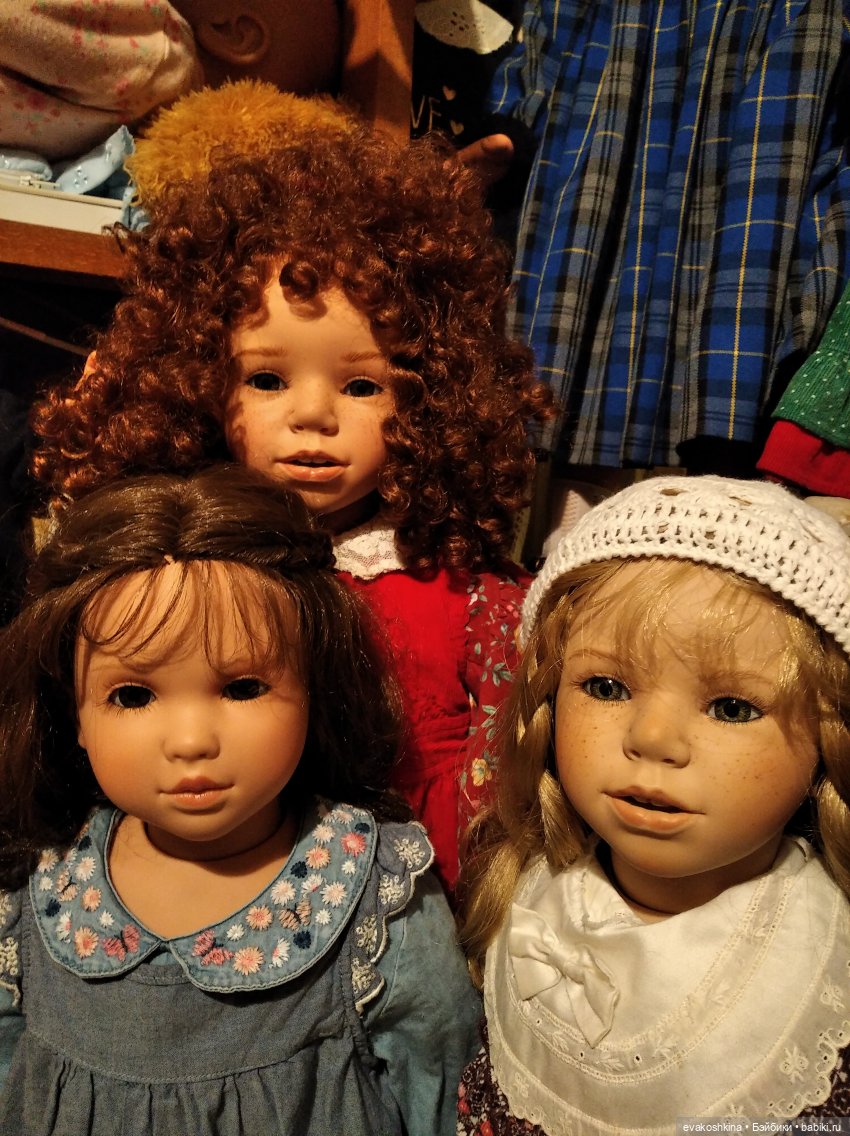У меня 2 кудрявых. Рыжая с голубыми глазами Кандела, черная с темными глазами Миранда.Еще есть блондинка Алтея и Кэрол. Все они очень большие и очень красивые. Выбрать невозможно. В разных платьях смотрятся по разному. Покупала им платья в Детском мире, 24 размер, подошло. Вопрос как разместить, чтобы собака не достала. Цена, по моему, очень умеренная. Такие куклы должны стоить в разы дороже.Хочется ими любоваться и любоваться.