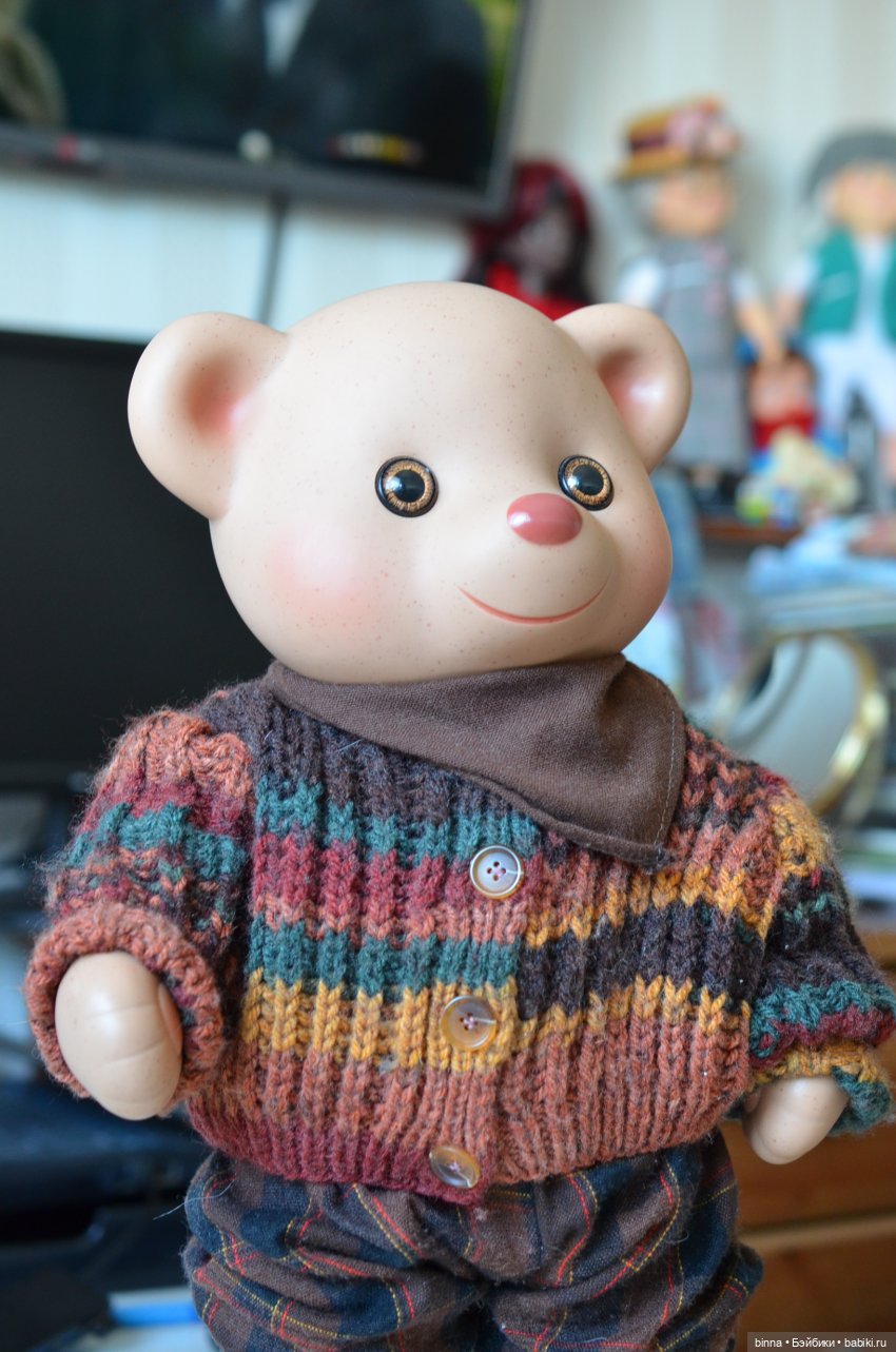 И как часто бывает, ждала медвежонка, а приехала медведица. Настасья Филлиповна! Очень милая барышня. Тяжеленькая, винил плотный, «конопатый» (вкрапления создают такой эффект). Носик, глазки будто пуговки! Связалось у меня на одном дыхании платьице (редко так бывает, несмотря на то, что вяжу я неплохо). Пришли покрасоваться!