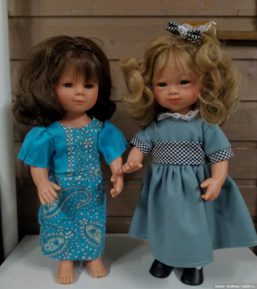 Пока могу только такое фото на телефон. Одна девочка пока еще без одежды, поэтому для фото я нарядила ее в пробники, сшитые вообще для другой куклы. И юбка на ней задом наперед.