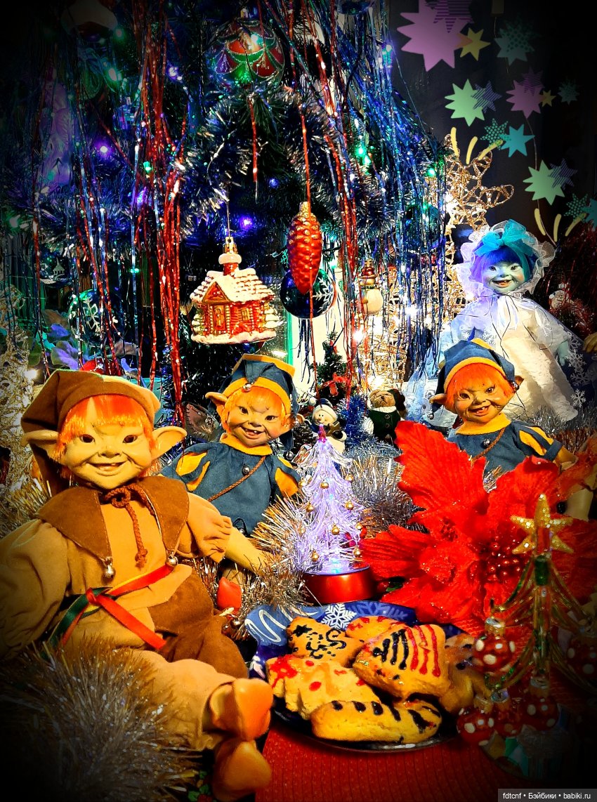 Кузя с Солонькой подавали девочкам конфеты, а те их развешивали на ёлке.