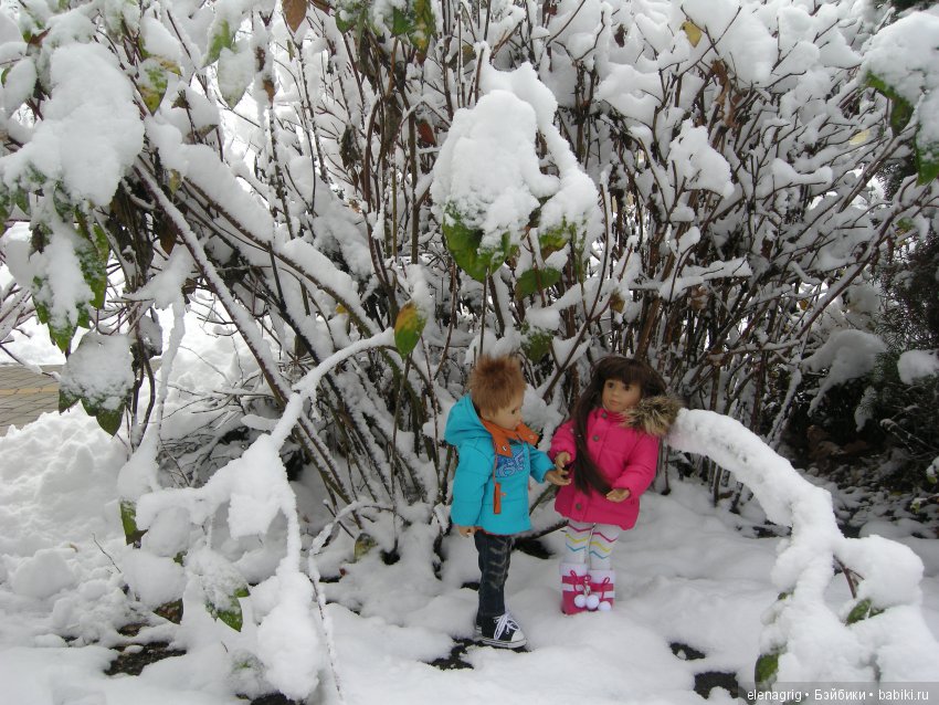 Девченки мои сразу по снегу решили походить.