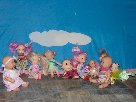 Слева направо: две подружки Анита и Таша, маленькая Ликуся, красавица Полинка, модница Алина, малышка Лера, феечка Сонечка и магнитная Алиса!