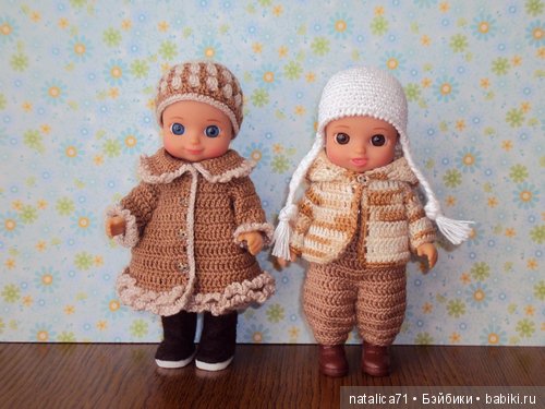 Все нарядики выполнены крючком из тоненькой хлопчатобумажной пряжи, очень приятной на вид и на ощупь.