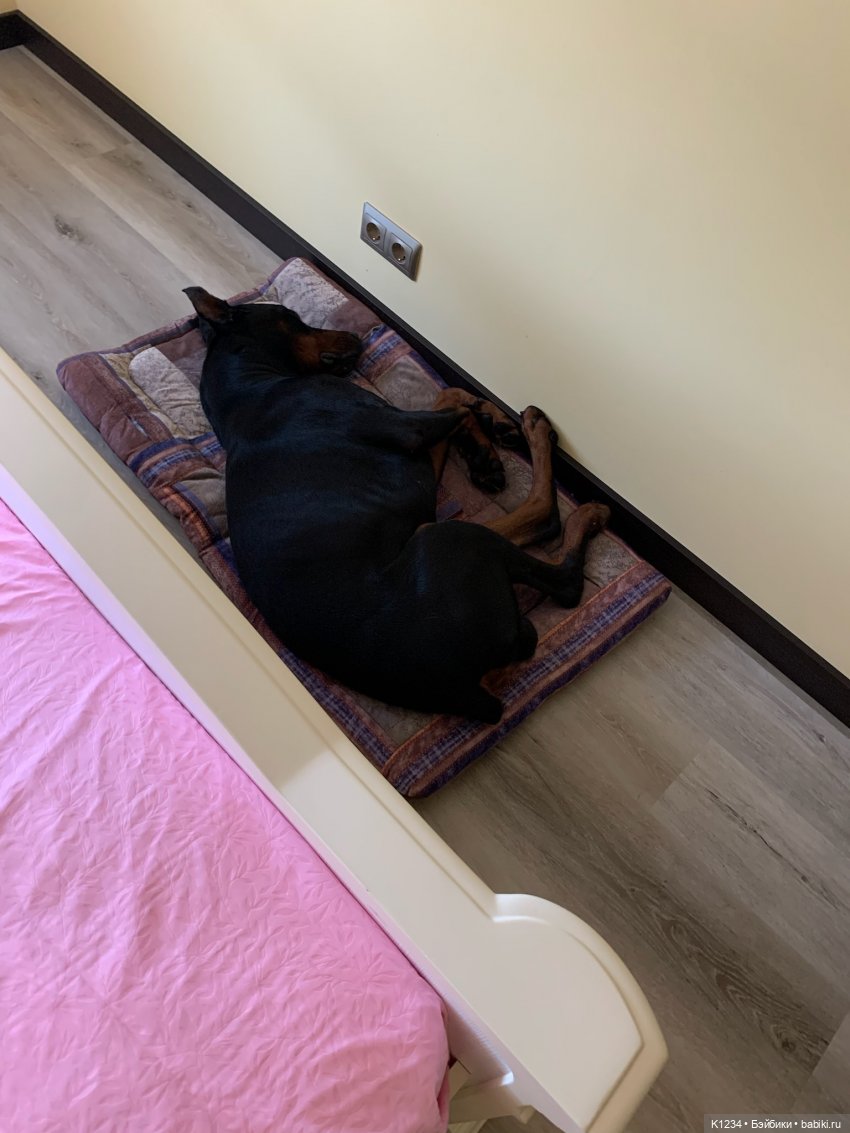 Кёртис может не переживать, доберман не тронет кота, он устал и крепко спит!))))
