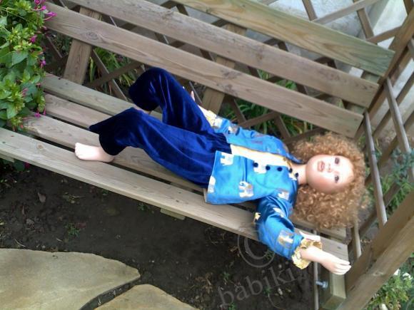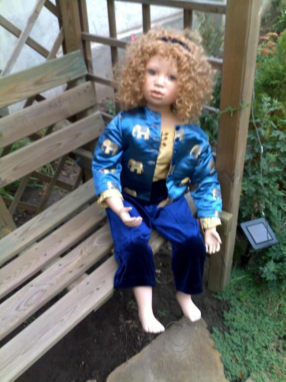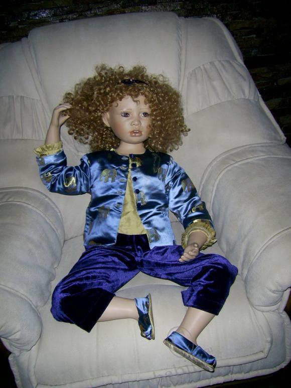 Танюшенька, как я рада твоему возвращению Ты не ошиблась, костюм определённо с этническим уклоном — шёлковый с рисунком в виде слоников, характерными пуговками… Это я обожаю у Оранж — так тщательно продумывает образы!!! Причём мне с ними совершенно не хочется спорить или менять (как у кукол Химштедт, её образы я не чувствую — хоть кукол считаю великолепными), я их принимаю сразу же безоговорочно!!!