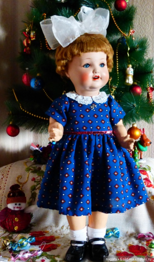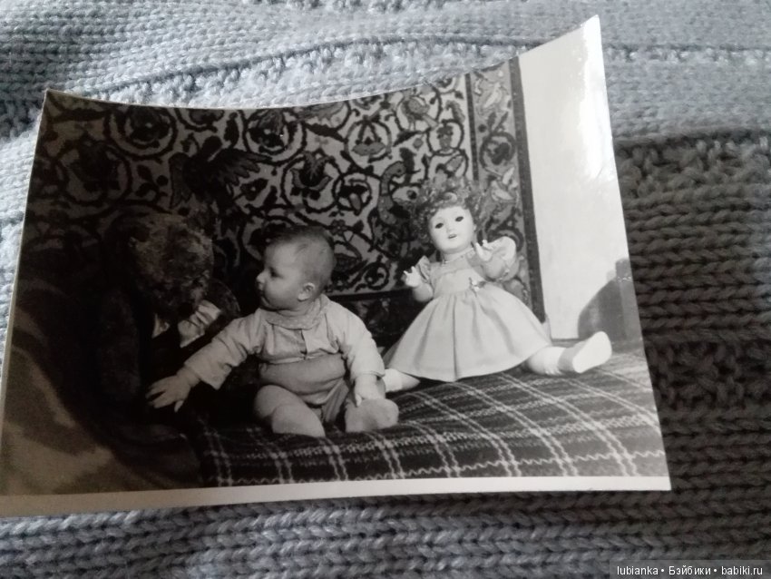 В 1964 году у меня родилась сестра, разница в возрасте у нас есть—я уже ходила в школу.Мама на свой вкус, как обычно(а вкусы у нас сней на тот период ну вовсе разные были), купила точь в точь такую кралю в Доме Игрушек на Кутузовском проспекте.Только платье на ней было из ацетатного шелка, красное, сбоку маленькая веточка цветов.И подарили ее, эту недотрогу, нам с сестрой на двоих:(Стоила она больше 10руб, а это были тогда солидные деньжищи! Звали ее Мальвина(тоже мамина идея, я по—другому назвала бы!), сидела она тоже всегда, как украшение, на диване… Ох, и не любила я ее!(Брать в руки и играть в нее особо не дозволялось, а у моей одноклассницы была точно такая же и там же купленная в салатовом платье.Так ее можно было выносить на улицу, ей шилось множество одежд и ее можно было переодевать… а моя бесцельно стояла и«украшала»дом((Поищу фотку и чуть позже сюда скину.