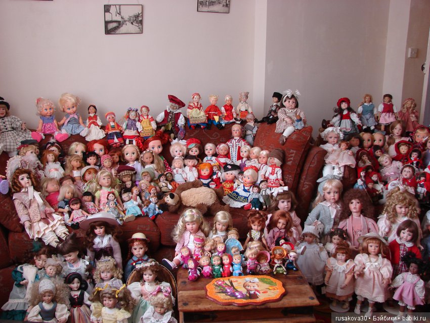 И это только половина моей коллекции.На фото примерно 150 кукол, остальные сидят по разным комнатам и лежат в коробках.Всего их около 300 кукол.