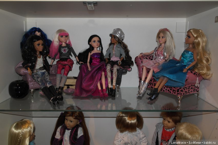 Хотя при желании доп. сидячие места я бы нашла, вон как Кристюша с барабульками хорошо уселасьУ меня ещё на полочках сидячие места вакантны :))))Лучше всего, все таки, куколкам живется в витрине! )) Все на виду и все защищены от лишнего света и пыли!