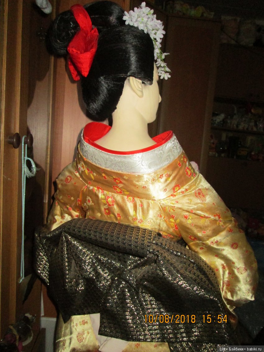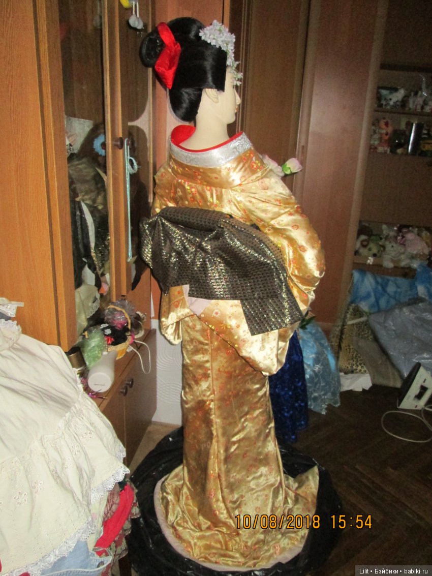 Вообщем всё это время мечта жила и я думала прикупить хотя бы небольшую гейшу, и купила вот такую, ростом 55 см (тоже редкий рост, в основном продают не больше 40 см, а мне хотелось большую). И тоже она появилась у меня неожиданно и недавно, купила в простом деревенском магазине, она была одна (магазину невыгодно было заказывать больше):