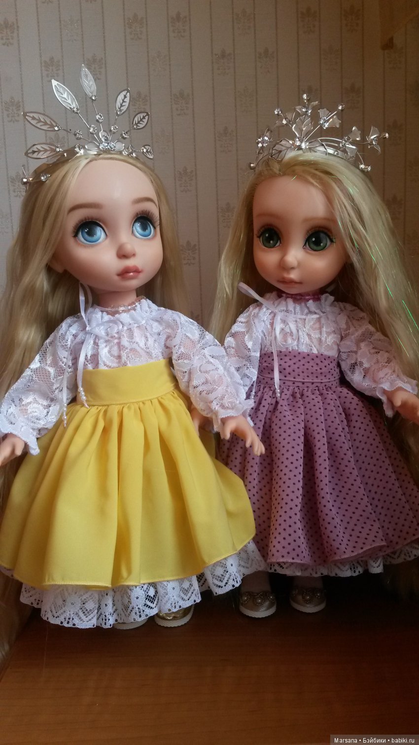 вот две у меня почти одинаковых диснейки рапунцель, мимо Майи в шопике просто не смогла пройти, а потом мечтала найти малышку с люрексом в волосах и нашла))
