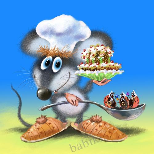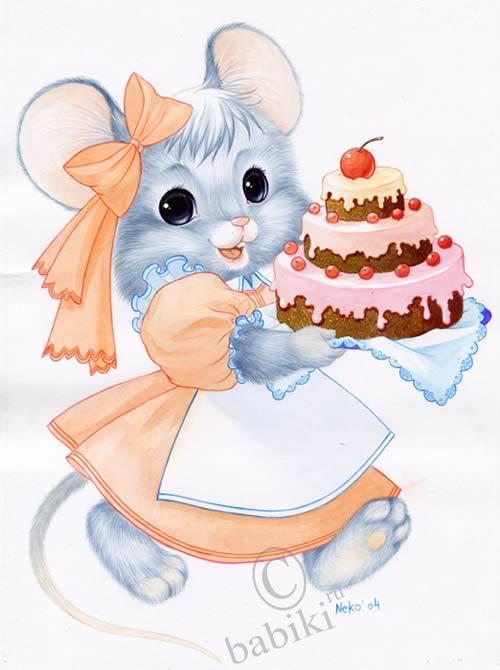 Какая замечательная мышка: красавица, умница, хозяюшка! И торт такой аппетитный — слюнки текут!