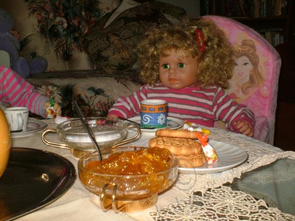 Мы его тоже усадим за стол и дадим ему молочка. С печеньем!
