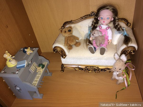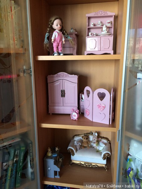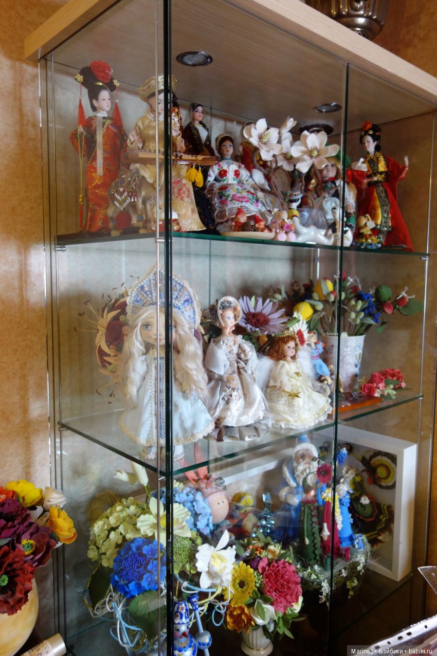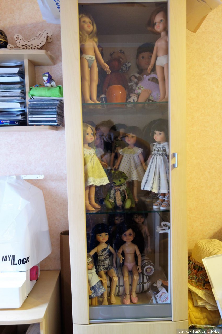 Я пока храню кукол в бабушкиных горках и буфете (всю посуду оттуда убрала).