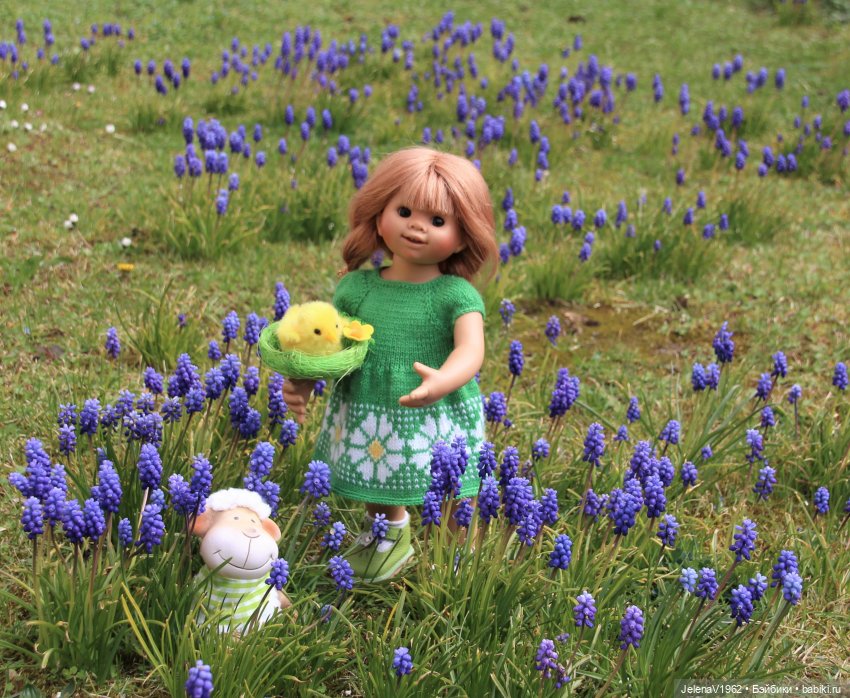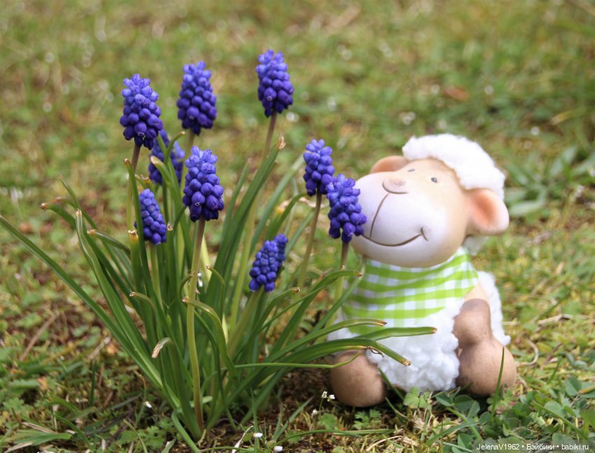 Эта овечка у меня уже давно, я её так близко и не рассматривала, просто как дополнение. А тут просматривала свежие фотографии Вихтелей, а она там цветочки нюхает сама. Я её решила покрупнее сфотографировать.