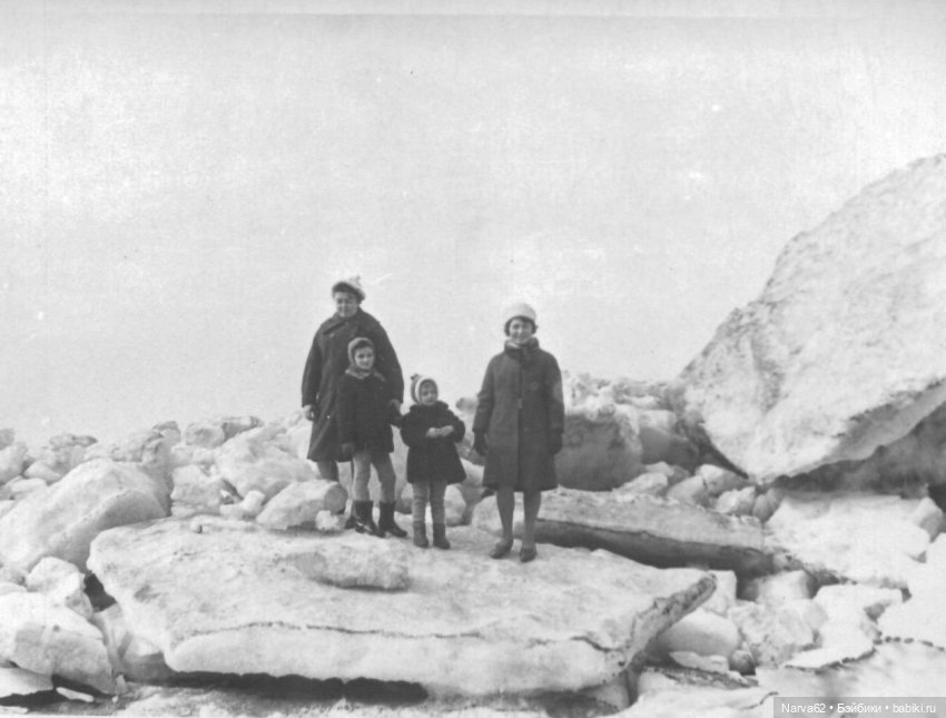 Усть-Нарва 1967 год. Ледяные торосы. Я, моя мама, мамина подруга и её сын — старше меня)))